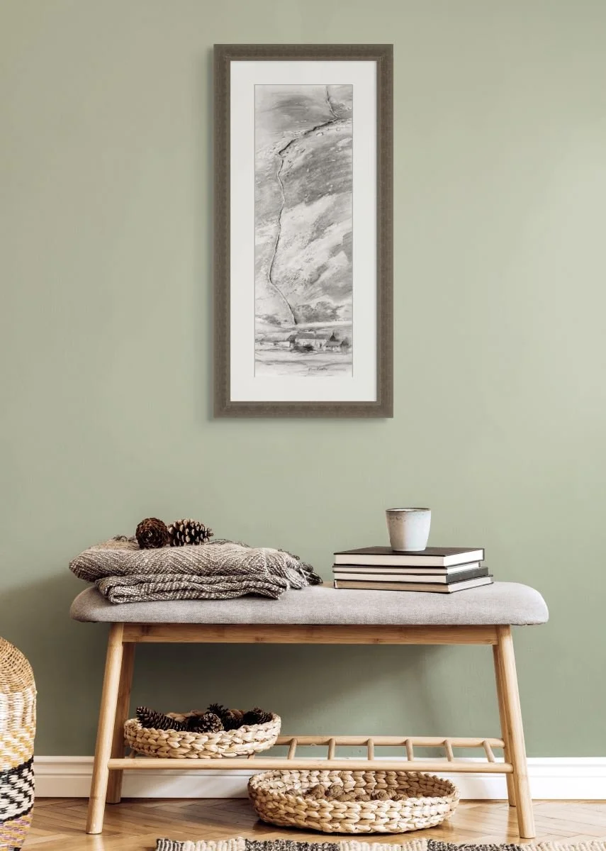 Rather than oil paint I used charcoal to convey the rockiness and altered the perspective slightly to show the detail of the wall higher up. This charcoal is a tribute to those who have made a living in difficult terrain over the centuries in Eryri.