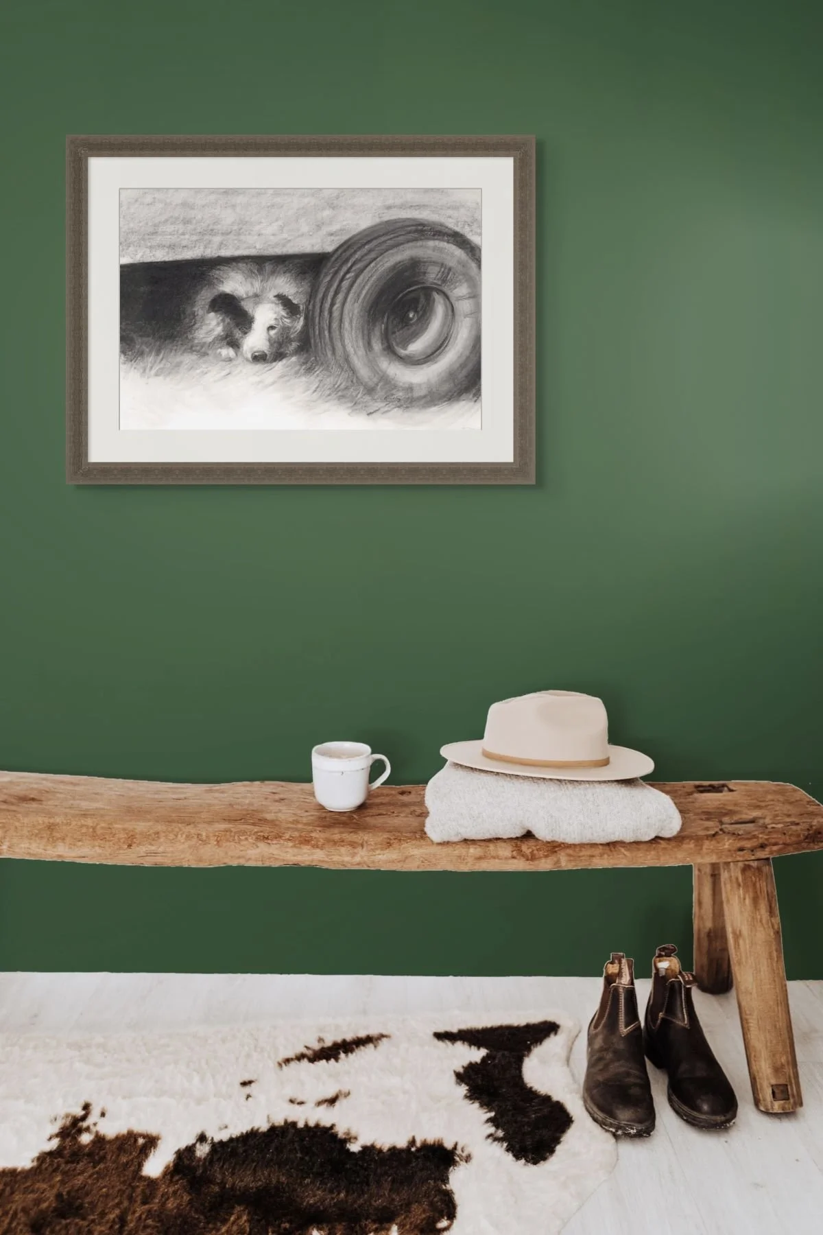 Back at the studio I recreated the image in charcoal, the sheepdog’s striking face half white half black emphasised his sharp eyes. I hoped to capture his nature as well as a moment in time.