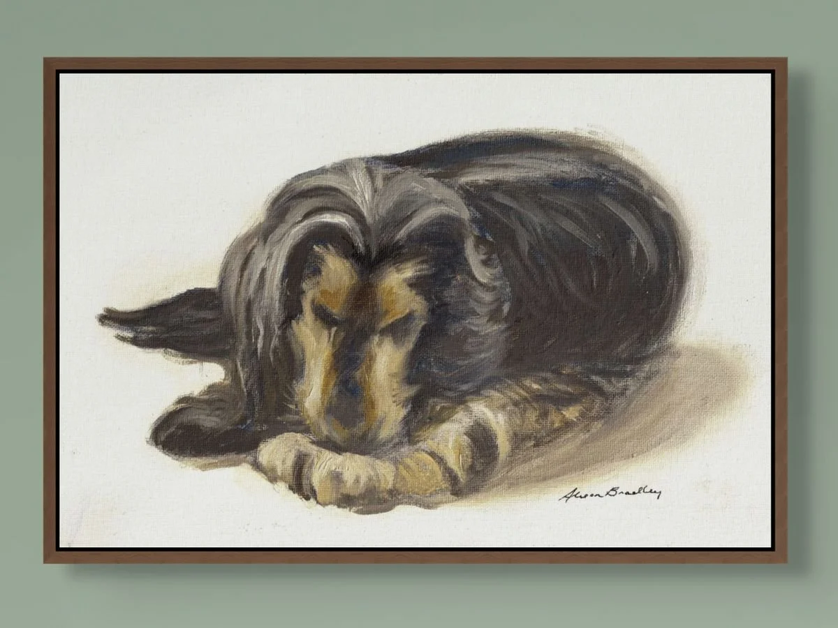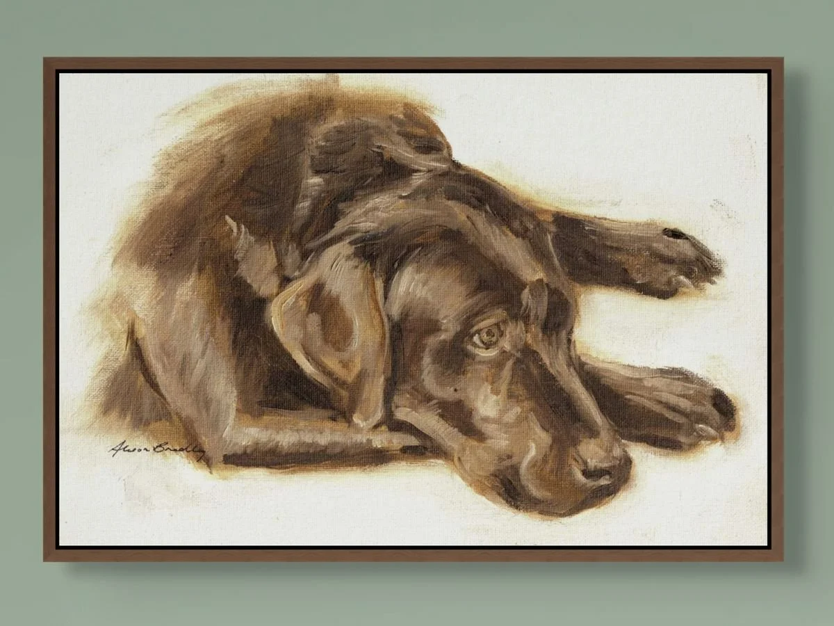 By working from carefully chosen customer images and simplifying the background, Alison can offer these portraits at a more accessible price point - without compromising the quality, soul, or integrity of the finished piece. To help her bring your companion to life on canvas, Alison encourages you to share multiple photos, short videos if you have them, and a few words about your animal’s personality, habits, or little mannerisms. This isn’t a mechanical copy of a snapshot, it’s a considered, intuitive painting. A painting that honours your companion in Alison’s distinctive style.